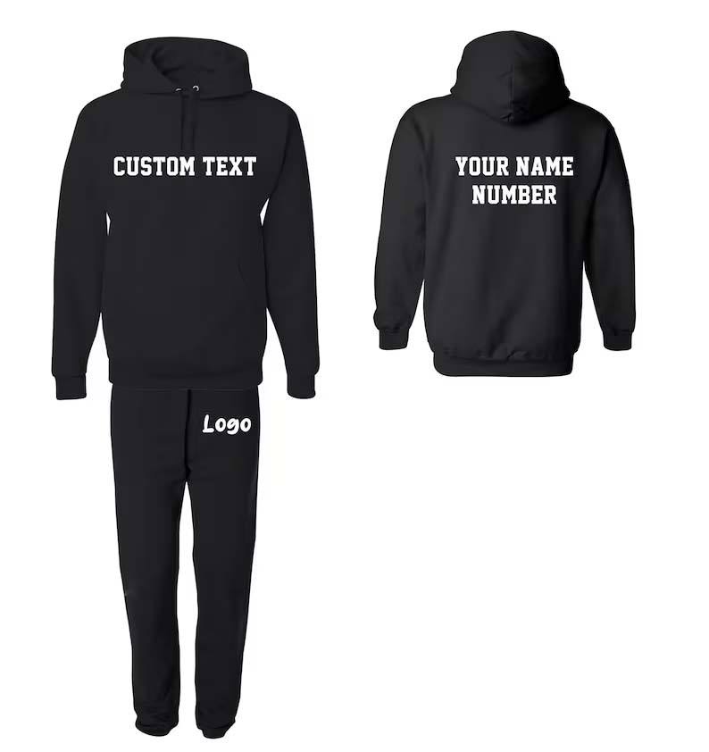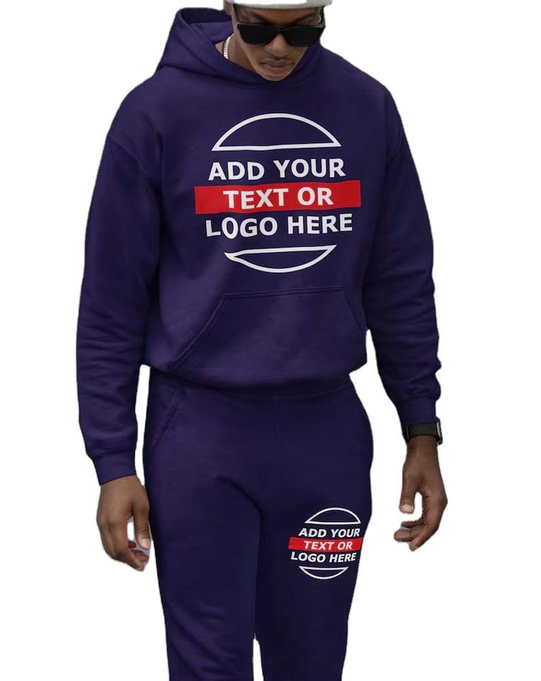 Conjunto Deportivo Personalizable de 2 Piezas para Hombre, Sudadera con Capucha y Pantalones Jogger, Mezcla de Algodón, Secado Rápido, Tela Transpirable para Maternidad, con tu Logotipo/Foto