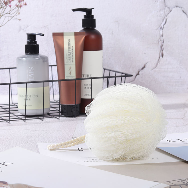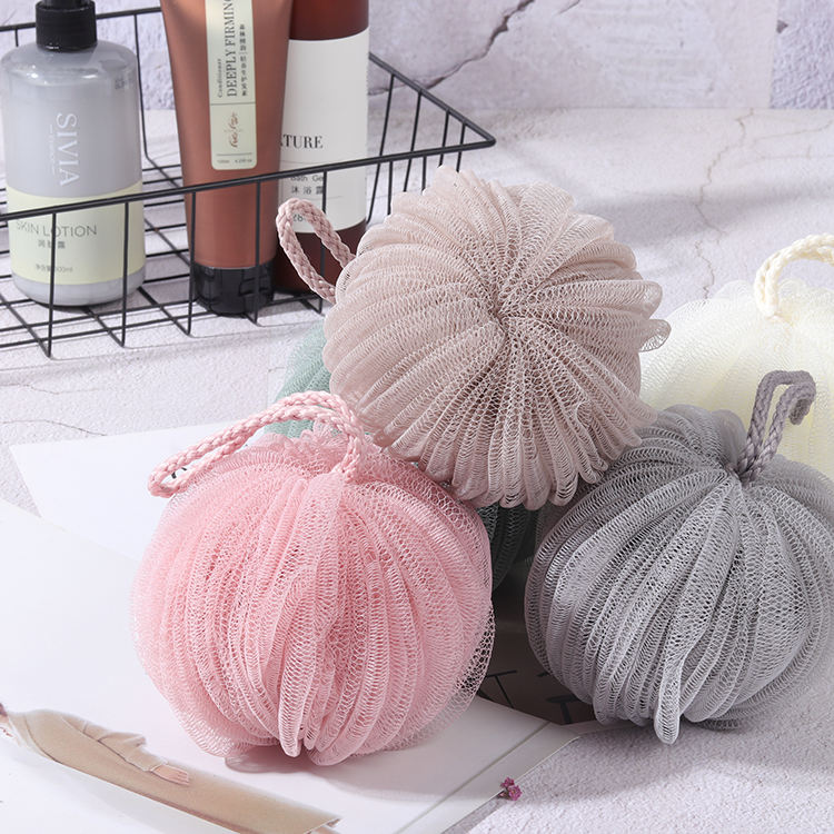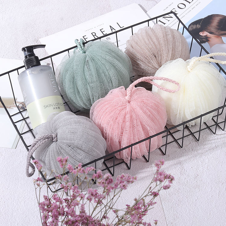 Material de esponja de lufa de baño de malla al por mayor para el cuidado de la piel esponja de ducha bola de ducha suave esponj