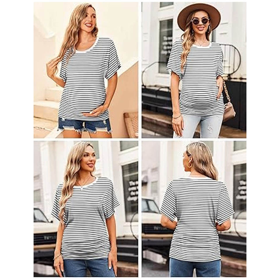 Camisas de maternidad Dolman manga lateral fruncido Tops túnica Casual embarazo ropa elástica blusas de enfermería verano 100% algodón
