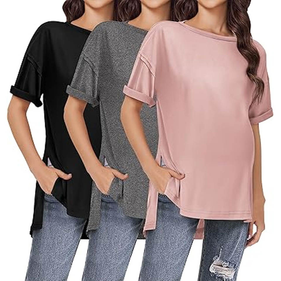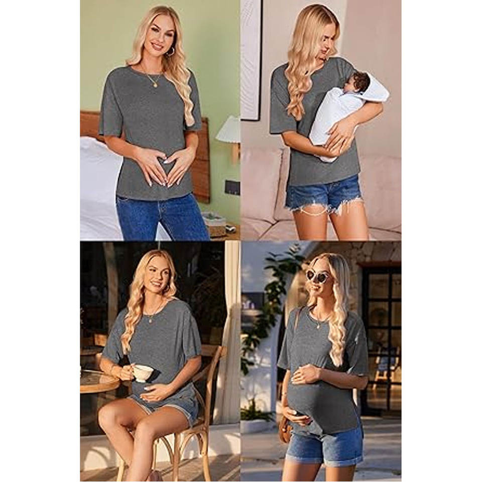 Camisas de maternidad de manga corta para mujer Tops de embarazo de gran tamaño Diseño de lado dividido Blusas posparto Esperando nuevas mamás suaves