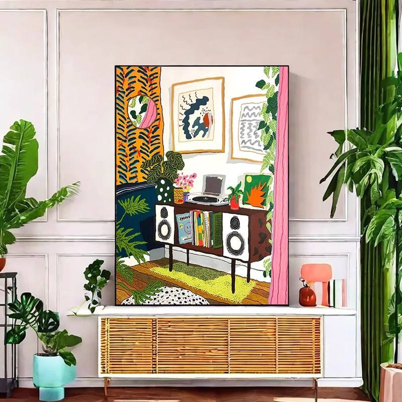 Arte Abstracto Estilo Matisse, Lienzo con Mujer Abstracta, Pintura Vibrante de Frutas y Flores para Decoración del Hogar, Sala de Estar