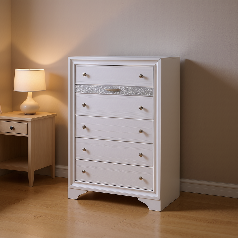 Cómoda Tradicional Matrix de 5 Cajones, Mueble de Madera Blanca para Dormitorio