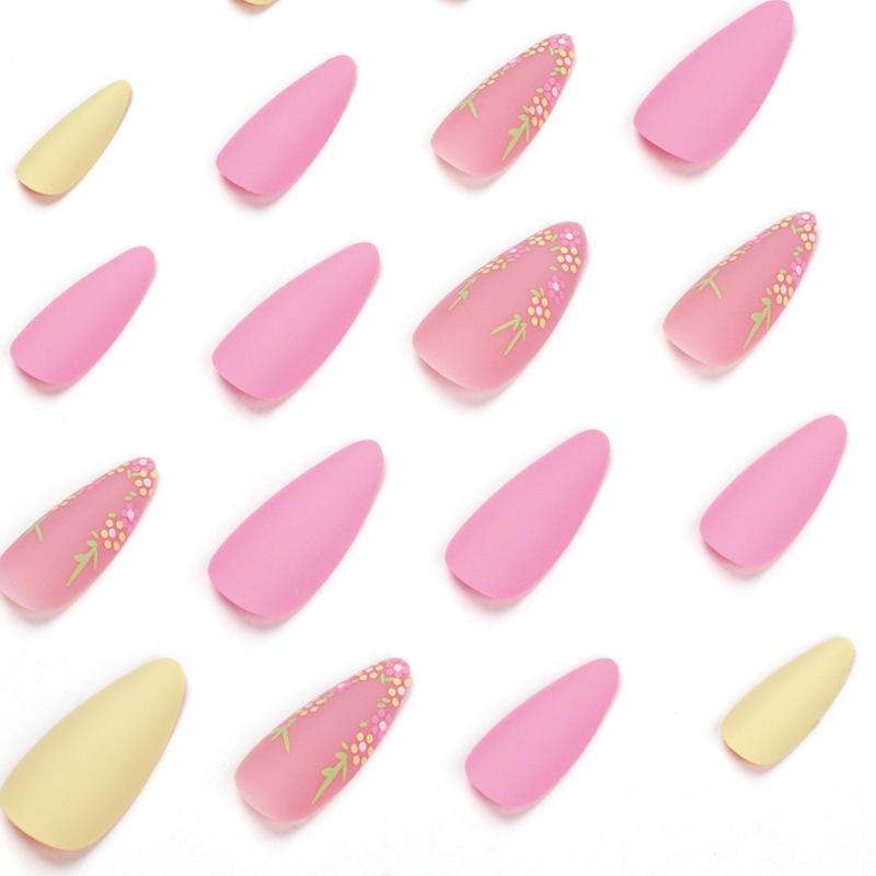 Uñas de almendra mate, ABS profesional falso, 24 Uds., Gel de almendra de longitud media, Kit de uñas prensado, precios diseñados, palo en uñas postizas