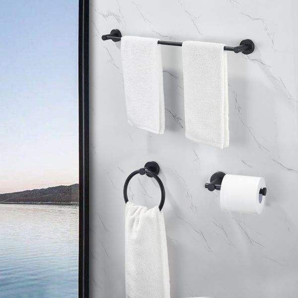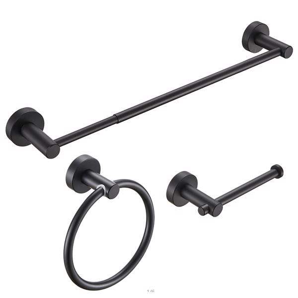 Juego de Accesorios de Baño Ajustables de Aluminio Grueso Negro Mate de 16-27 Pulgadas, 3 Piezas, Barra para Toallas con Otros Accesorios