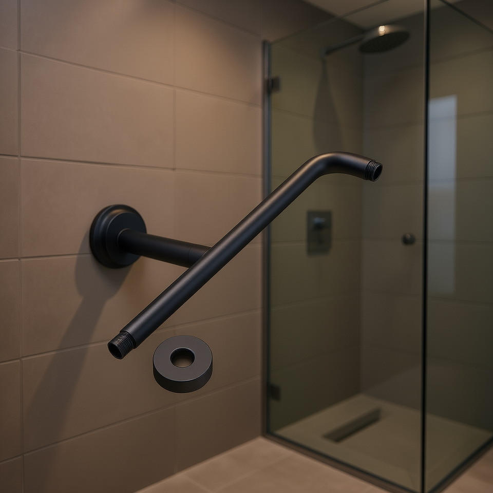 Brazo de Ducha Fijo Negro Mate de 16.5 Pulgadas, Accesorio de Ducha en Forma de L de Acero Inoxidable para Montaje en Pared
