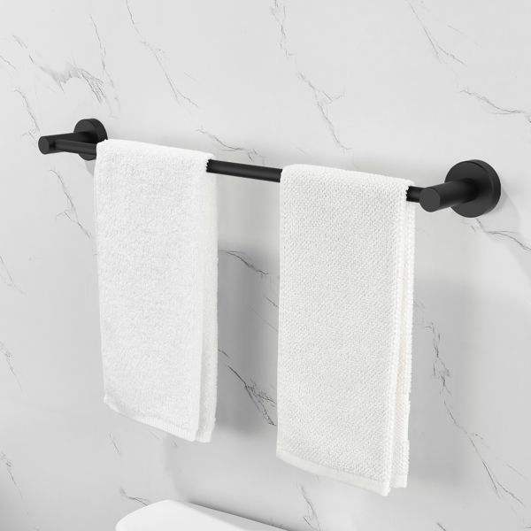 Juego de Accesorios de Baño de Aluminio Grueso de 24 Pulgadas, Color Negro Mate, Montado en la Pared, 6 Piezas, Incluye Juego de Toallero