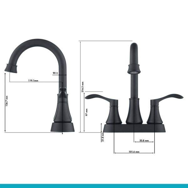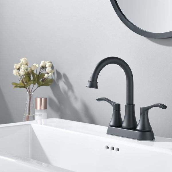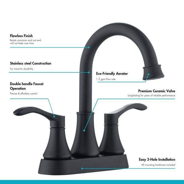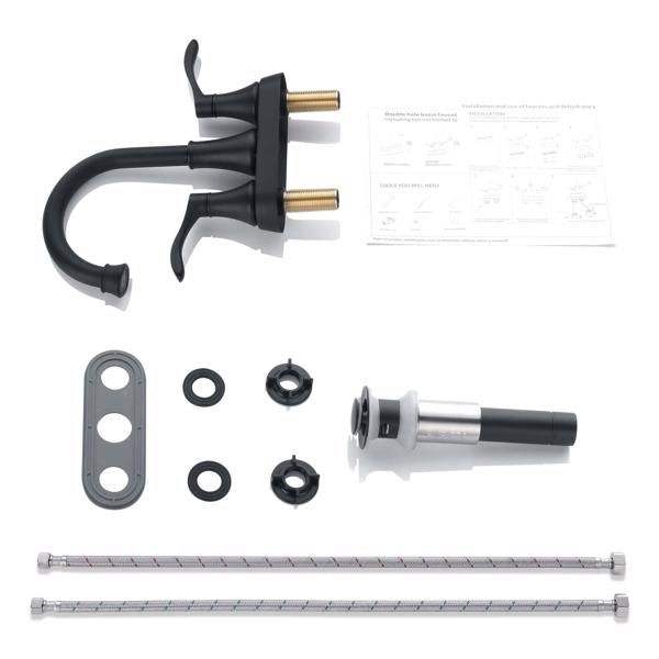 Grifo de Baño para RV de 3 Orificios, Color Negro Mate, con Desagüe Automático de Acero Inoxidable, Grifos de Lavabo de 2 Manijas, Accesorios Interiores