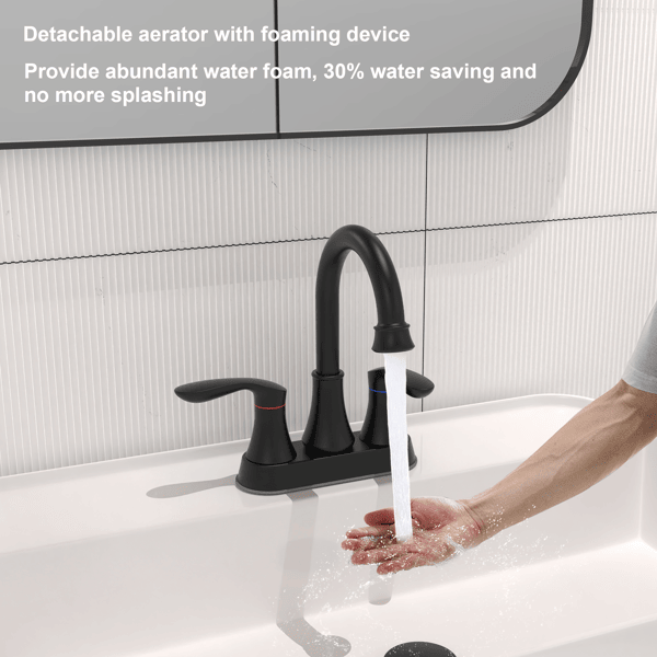 Grifos de lavabo de baño negro mate de 4 pulgadas con 2 manijas, desagüe de presión y mangueras de suministro. No se pueden enviar los fines de semana.