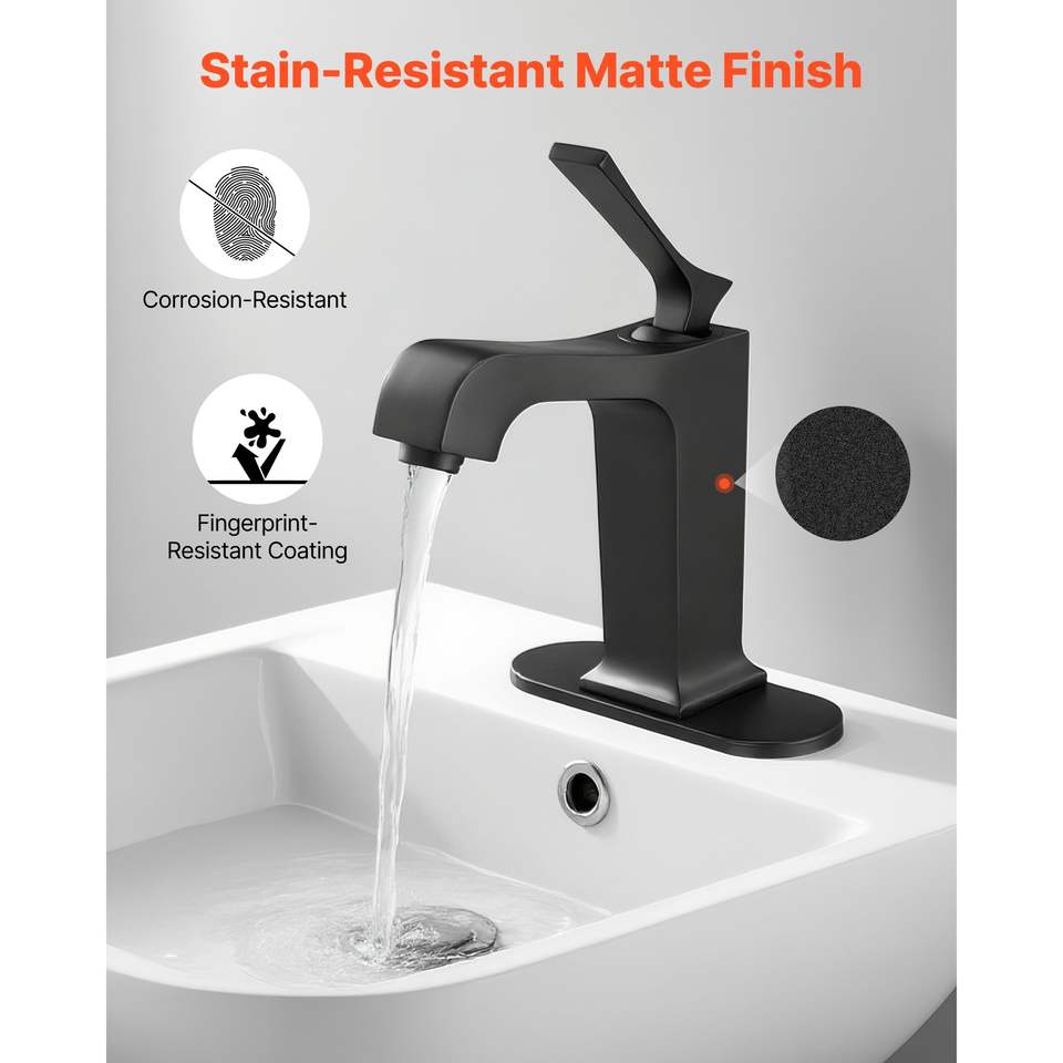 Grifo de Cocina Monomando Negro Mate con Desagüe de Botón, Grifo de Fregadero Fácil de Usar para Suministros de Agua en Cocinas