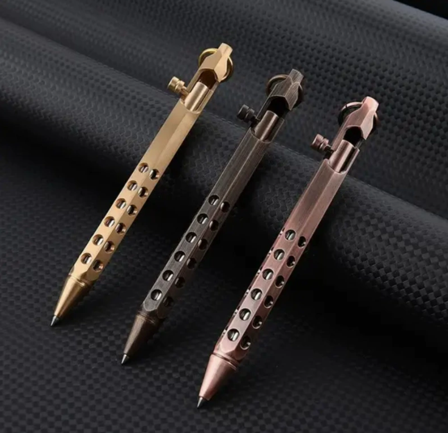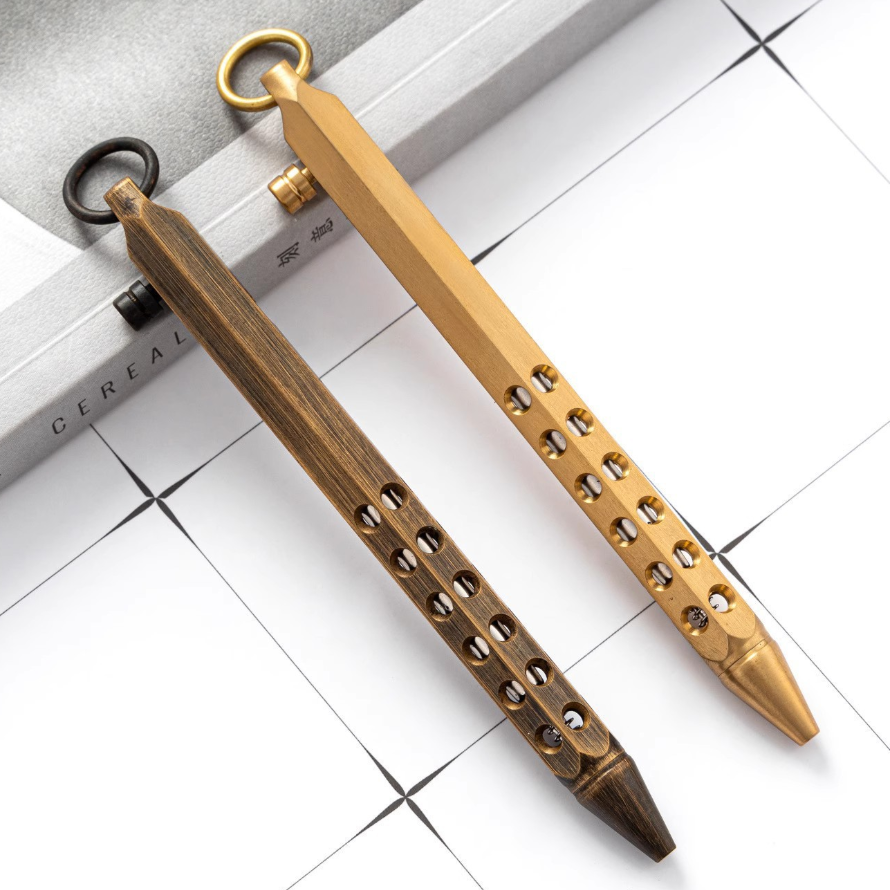 Bolígrafo Retráctil Retro de Cobre Mate, Bolígrafo Hexagonal de Metal de Latón, Bolígrafo de Papelería para Estudiantes
