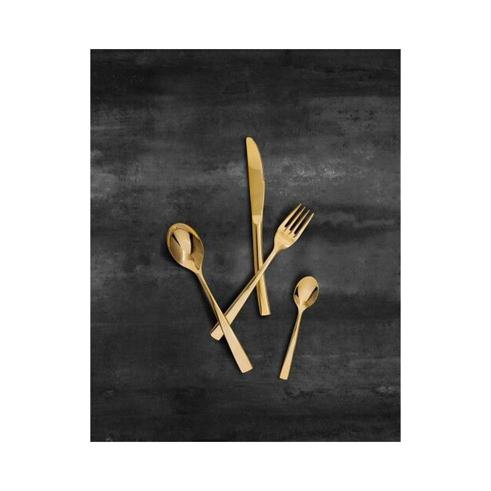 Juego de cubiertos chapados en oro, cuchillo de acero inoxidable, juego de cuchara y tenedor, cubiertos de mango largo plano dorado de acero inoxidable