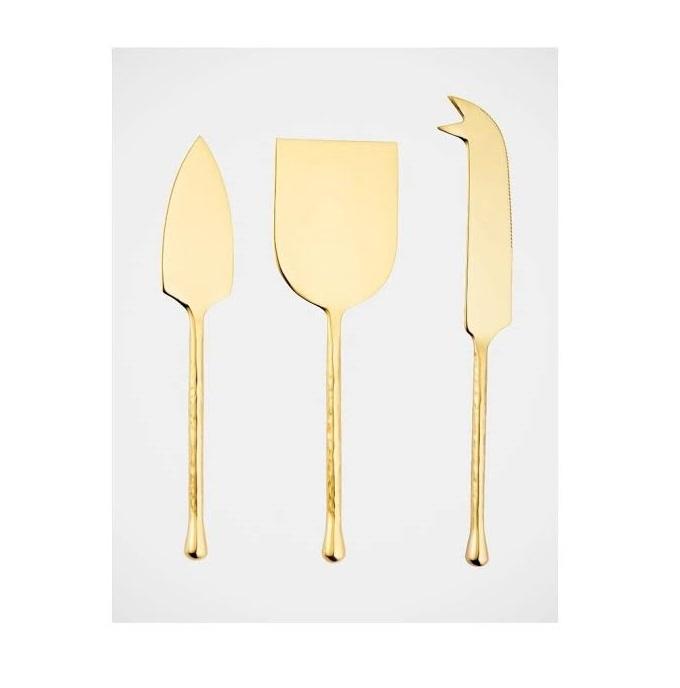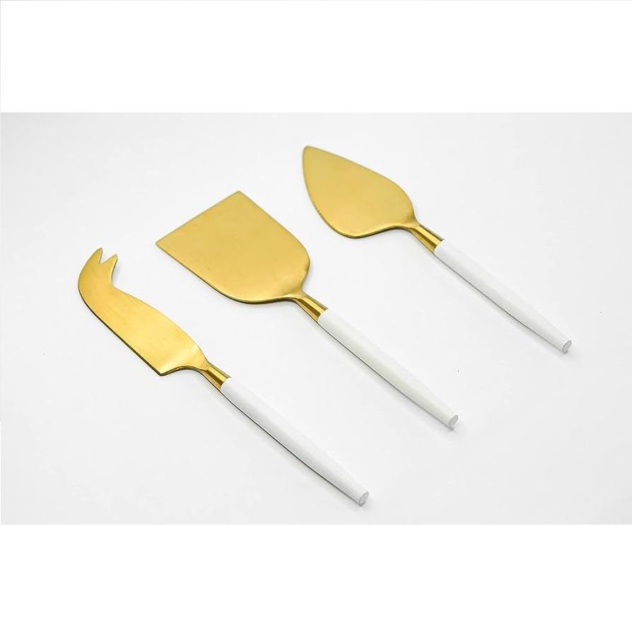 Juego de Cuchillos para Queso Desechables de Acero Inoxidable Dorado Mate, 3 Piezas, Utensilios de Servir Queso Ecológicos de Lujo para Bodas y Hoteles