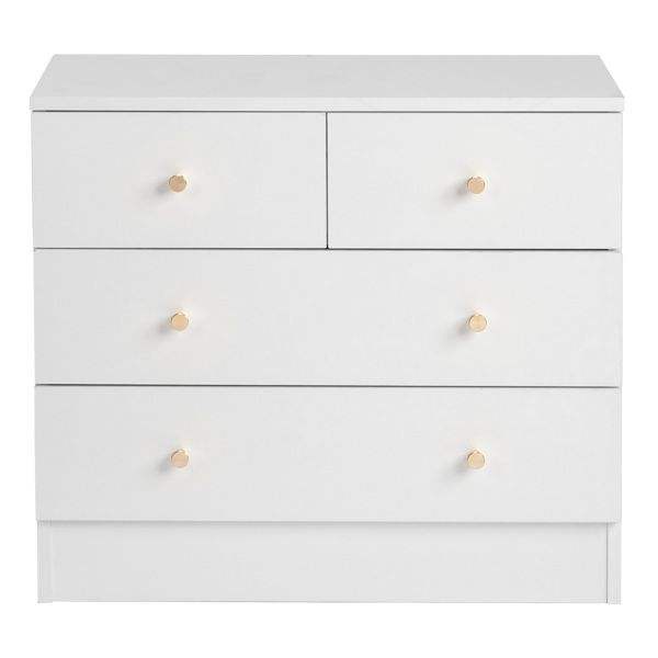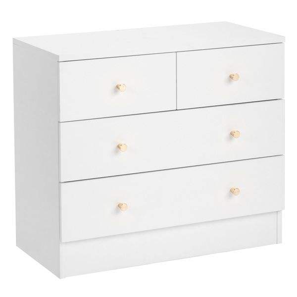 Cómoda de tres capas y cuatro cajones con asa dorada mate, tablero de aglomerado blanco con partículas y revestimiento de triamina, 66*33*56cm