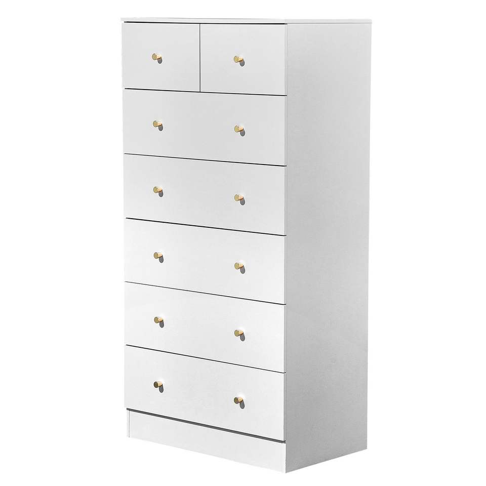 Mueble Organizador con 5+2 Cajones y Tiradores Dorados Mate, Acabado Blanco Mate, Aglomerado, 66*40*131cm, Chapa de Melamina