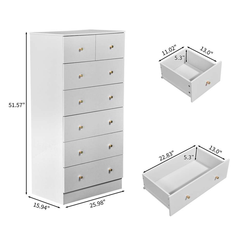 Mueble Organizador con 5+2 Cajones y Tiradores Dorados Mate, Acabado Blanco Mate, Aglomerado, 66*40*131cm, Chapa de Melamina