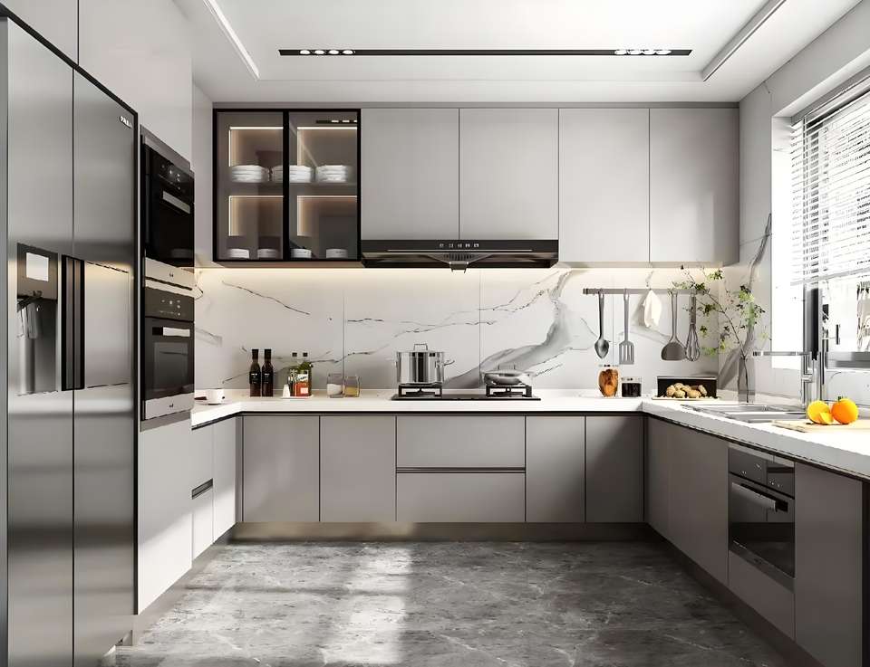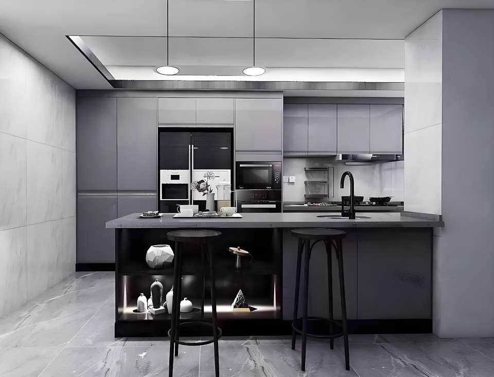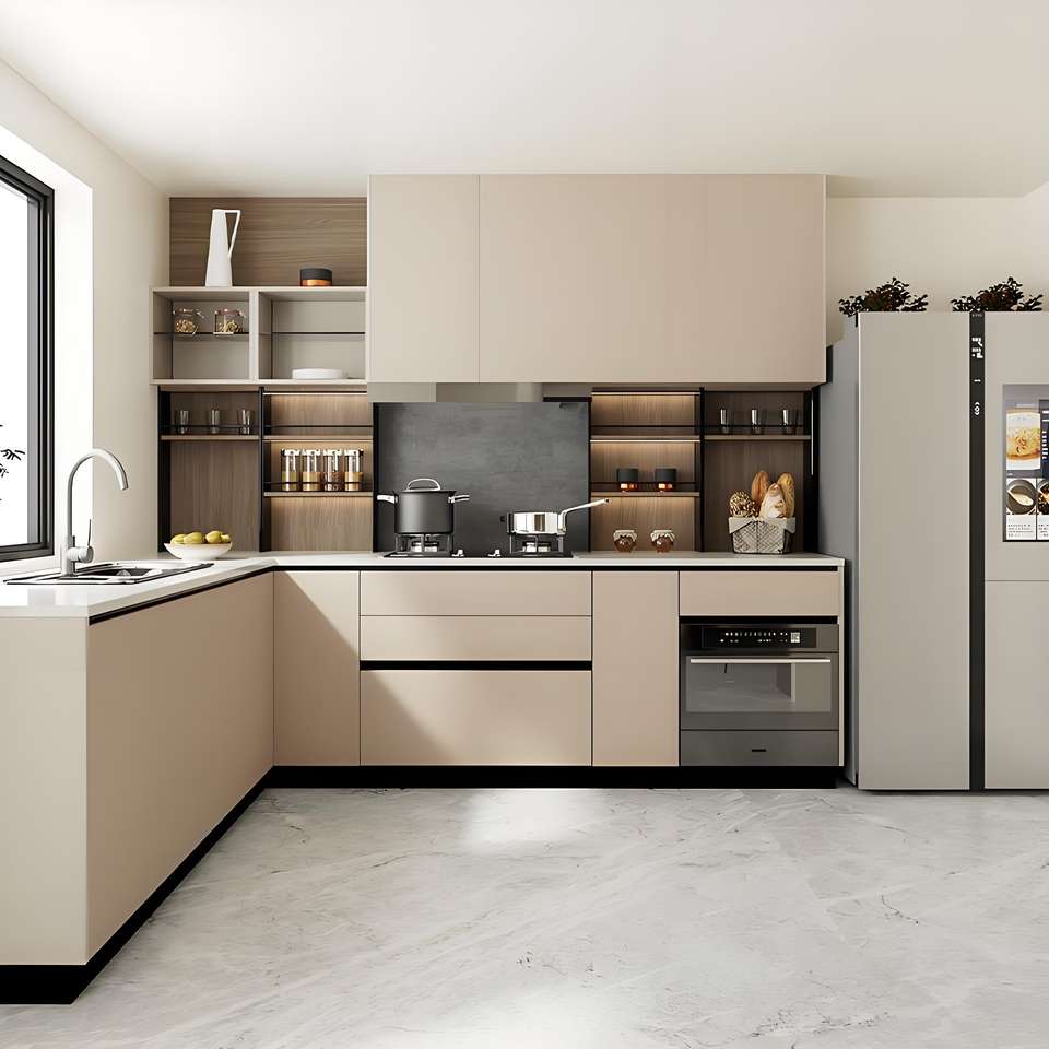 Gabinete de cocina personalizado gris mate Tablero de melamina Gabinete de cocina Diseño Muebles de cocina