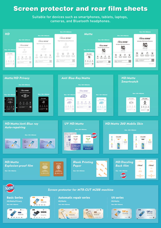 Lámina Protectora de Pantalla de Hidrogel Mate, Material en Bruto para Máquina Cortadora de Protectores de Pantalla Móviles, Película para Cualquier Teléfono Celular