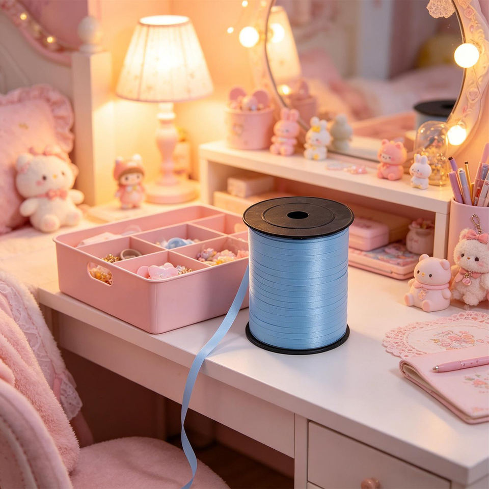 Cinta Azul Mate de 500m para Decoración de Globos, Personalizable, Ideal para Fiestas