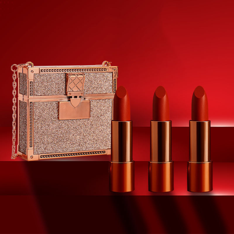 Personalized Matte Lipstick 3-piece Set with Luxury Chain Bag