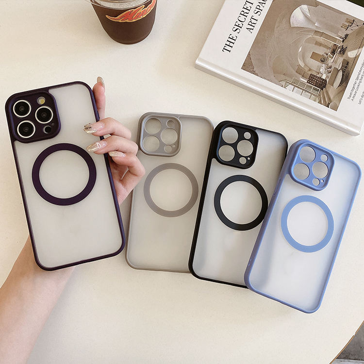 Funda de teléfono transparente magnética mate para iPhone 15 16 Pro Max 14 13 12 11 Pro, funda protectora delgada para teléfono con cobertura completa