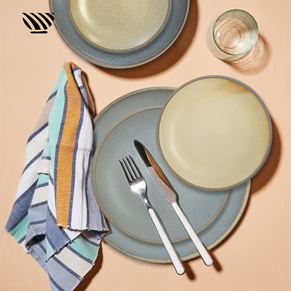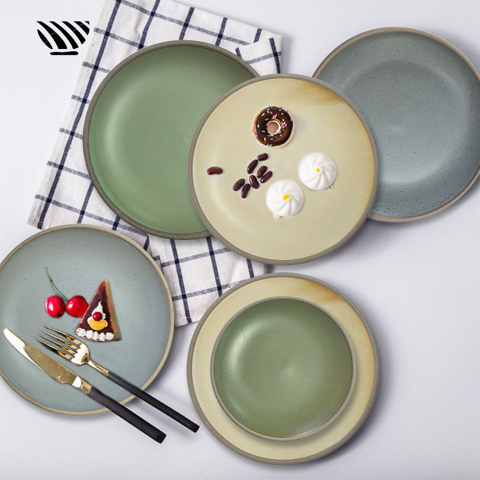 Juego de Platos de Gres Mate Multicolor, Nuevo, Ecológico, Duradero, Apto para Lavavajillas, Vajilla para el Hogar, Cafeterías y Hoteles