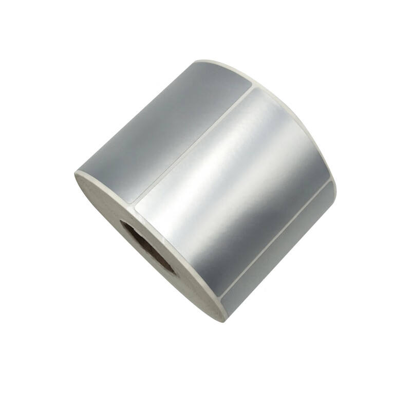 Etiquetas adhesivas de PET adhesivas plateadas mate para alimentos, diseño de código de barras de varias filas para pastel, Chocolate, pan, azúcar, embalaje de aperitivos