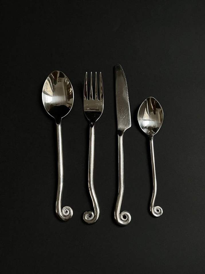 Juego de Cubiertos de Estilo Antiguo en Plata Mate, Cubiertos de Acero Inoxidable Duraderos para Decoración de Mesa de Cafetería y Servicio al Cliente de la India
