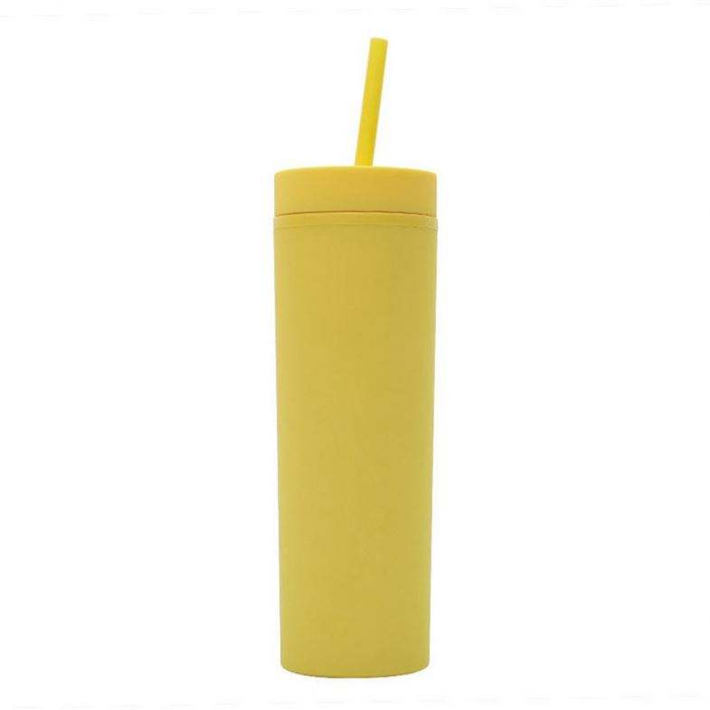 Vasos delgados mate con tapas y pajitas Vasos delgados de 16oz Vasos de plástico acrílico pastel de doble pared a granel Tazas
