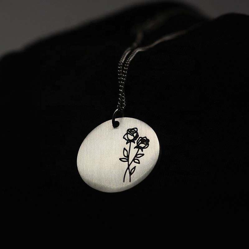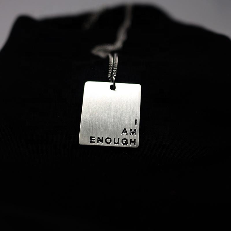 Collar con colgante rectangular de acero mate, joyería geométrica personalizada, símbolos grabados, citas de palabras, mensaje inspirado