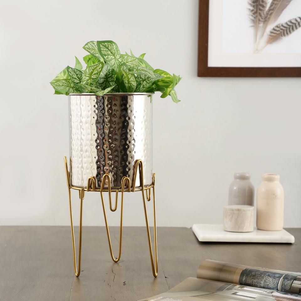Maceta de metal de hierro redonda con recubrimiento de polvo blanco mate, estilo decorativo interior minimalista para aplicaciones de jardín