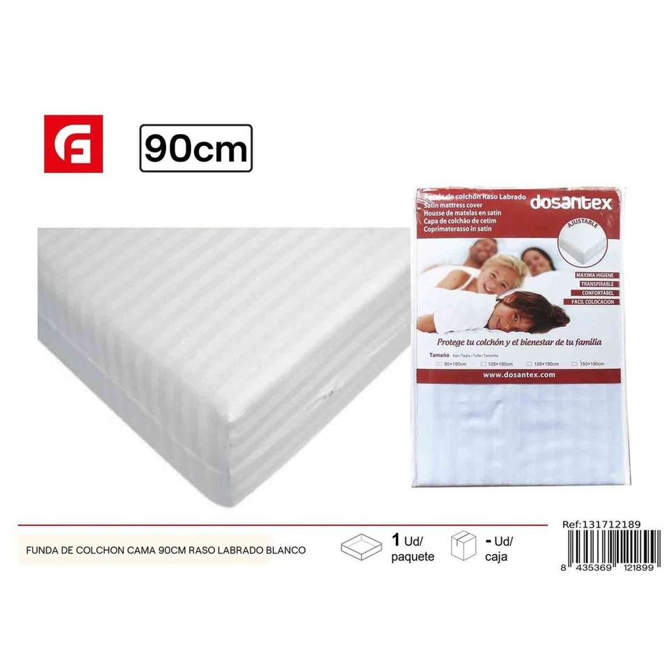 Funda de colchón cama de 90 cm, estampado satinado blanco-Ropa de cama textiles