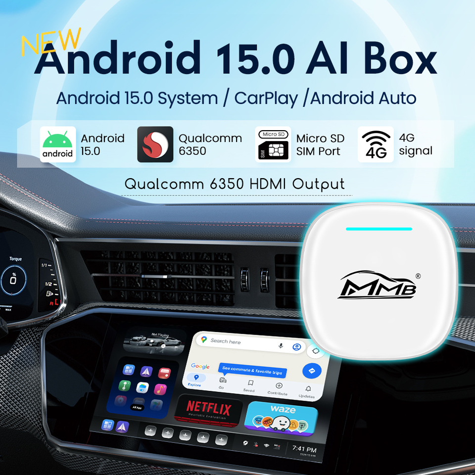Max Ultra SM6350, Caja de TV para Auto Android 15 de 8 Núcleos, 8GB+128GB, Android Auto Inalámbrico para Netflix, Play Store, GPS, CarPlay, Ai Box