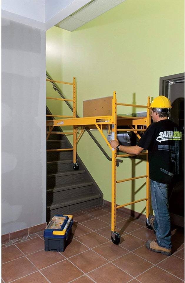 Paquete de Torre de Andamio Tipo Baker Maxi Square - 12 Pies, Capacidad de 1,000 Libras con Plataforma de Acceso, Barandilla de Protección y Doble Bloqueo en U