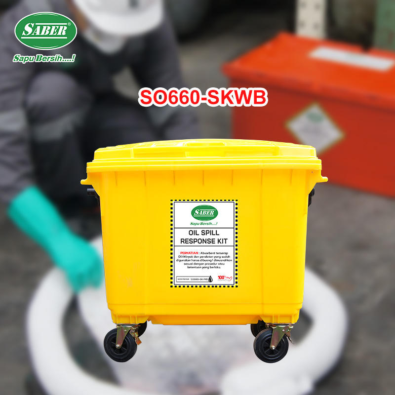 Kit de respuesta a derrames de petróleo SABER de máxima cobertura, contenedor con ruedas de 660 litros para depósitos terminales y astilleros marinos