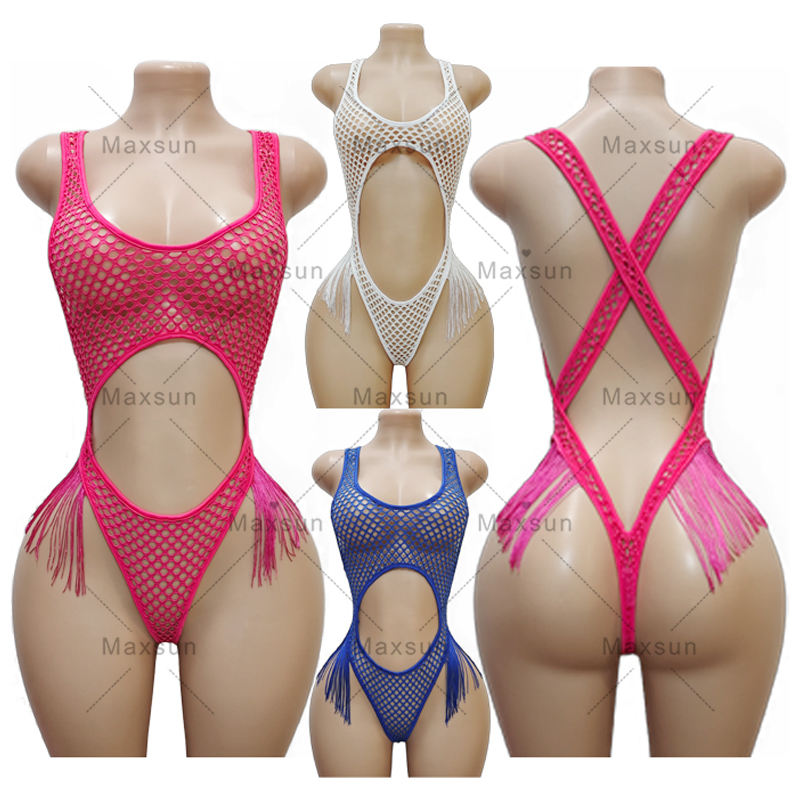 Maxsun ropa de baile exótica: bikini con red y strass, traje de baño de tres piezas, moda sexy para chicas, body tipo media