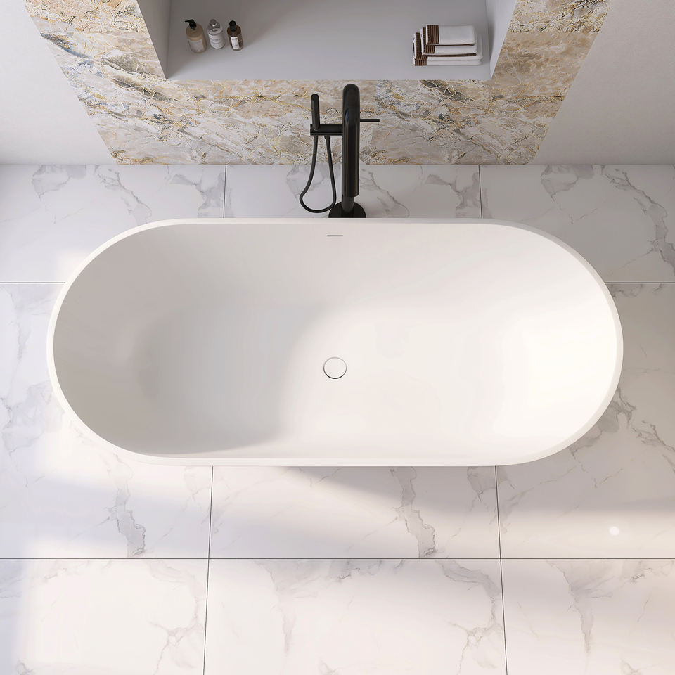 Bañera de baño independiente moderna Maydon, bañera ovalada de superficie sólida para un diseño de baño elegante, piedra artificial, categoría de producto