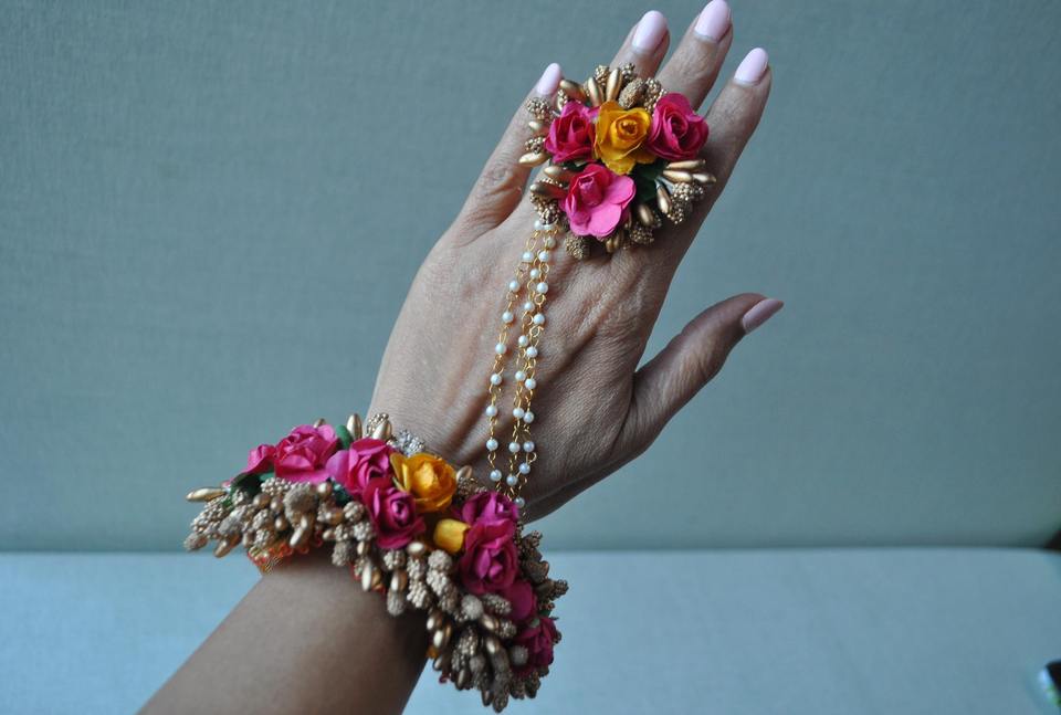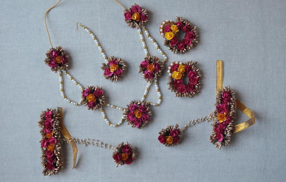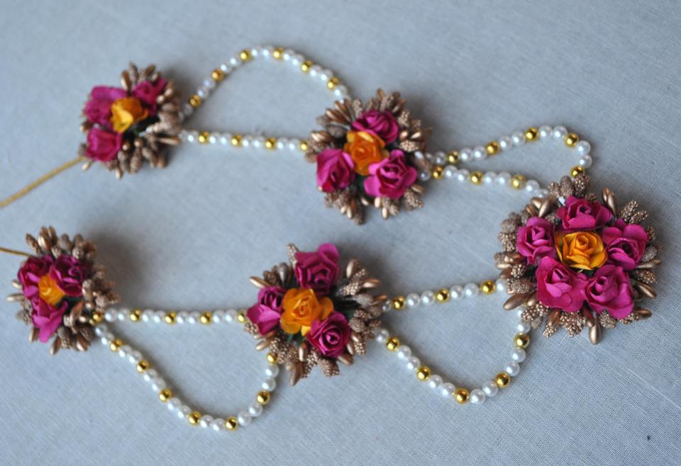 Conjunto de joyería nupcial de flor de Mayo con collar de concha de cauri, anillo de pendientes para Mehndi Haldi, funciones de novia tradicionales