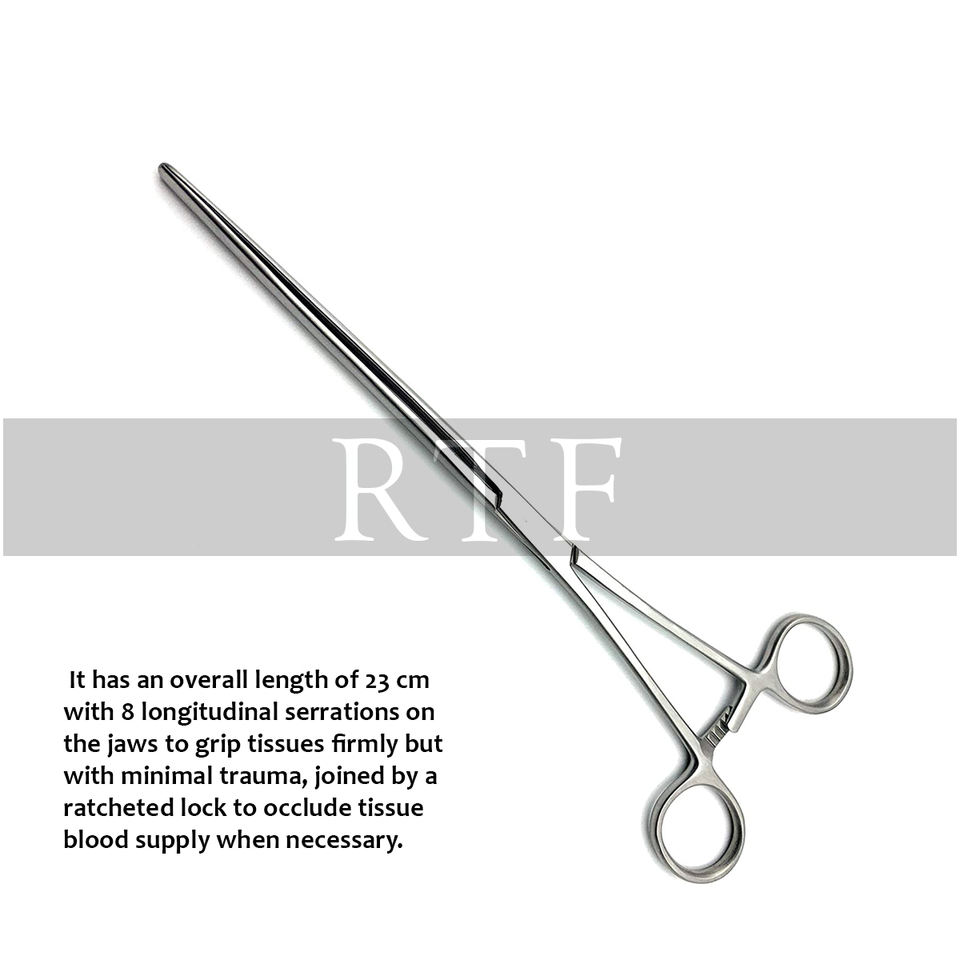 Pinza Intestinal Manual Mayo Robson de 23 cm, Recta, de Acero Inoxidable, con Mango de Anillo, Certificación CE