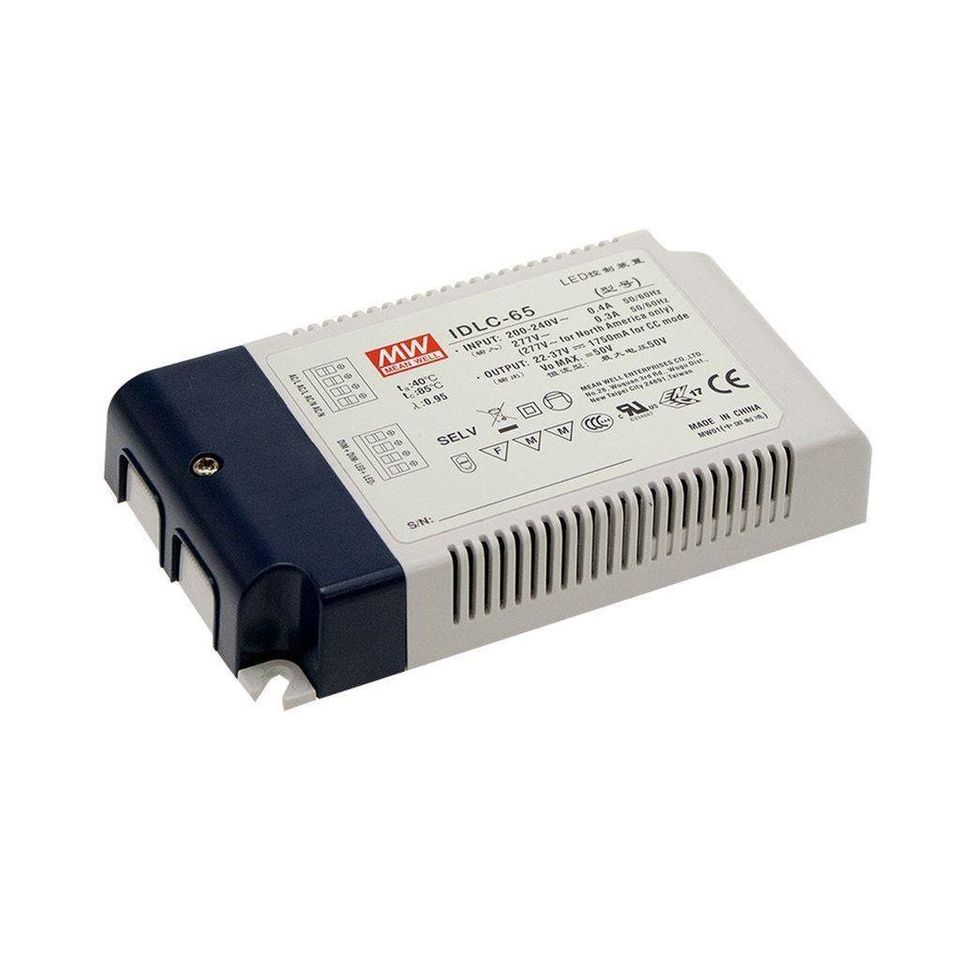 Controlador LED Mean Well IDLC-65 de 45W 1750mA, Corriente Constante, Regulable, de un Solo Canal, Convertidor de CA a CC