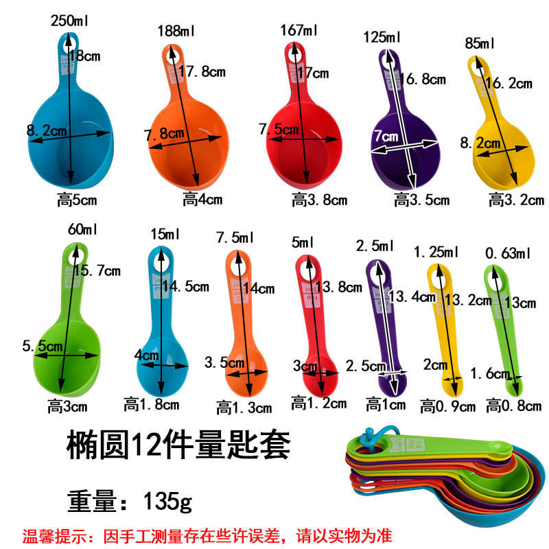 Funda ovalada para cuchara medidora de 12 piezas