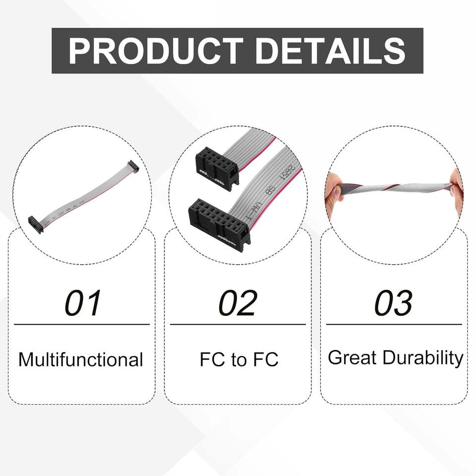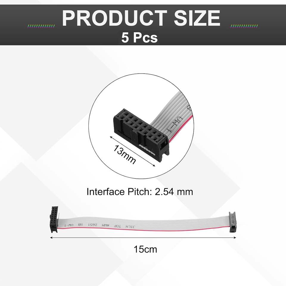 Cable Plano FFC/FPC Meccanixity, Paso de 2.54 mm, 15 cm de Largo, Conector FC a FC de 10 a 16 Pines para Dispositivos Electrónicos