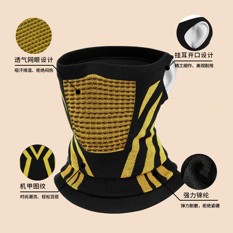 Mecha Style Ear Hook Neck Scarf Black Breathable Mesh Unisex Ski Cycling Neck Warmer High Elasticity Protection