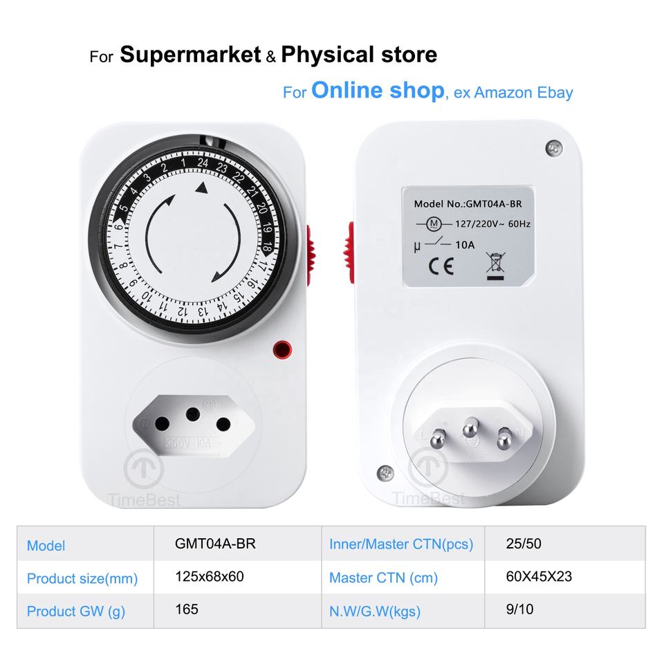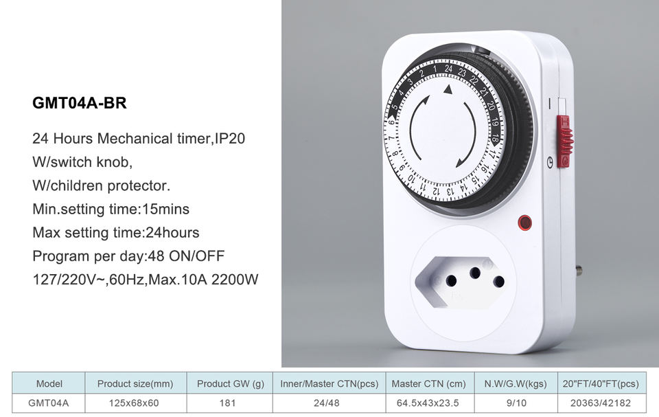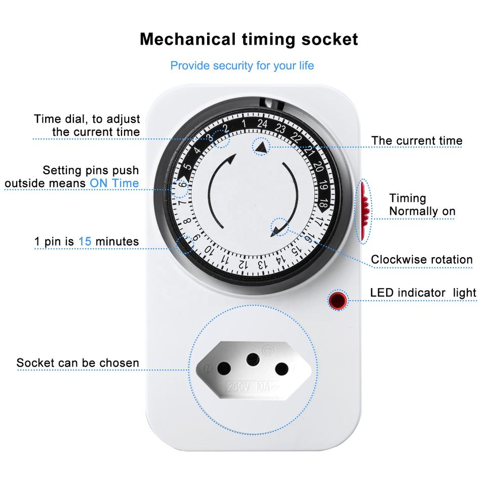 Type:Mechanical 24-Hour Timer Socket for Brazilian Household Use