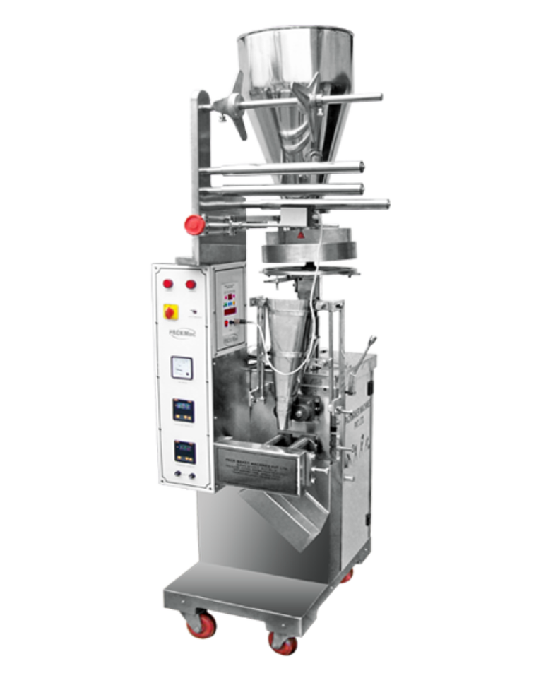 Máquina mecánica de llenado y sellado de envases para polvo de 10 gramos a 100 gramos con capacidad de 2500 bolsas/hora