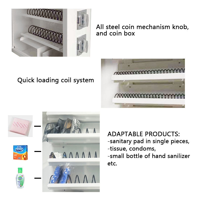 Mini máquina expendedora mecánica para toallas sanitarias, condones u otros productos empaquetados en bolsas