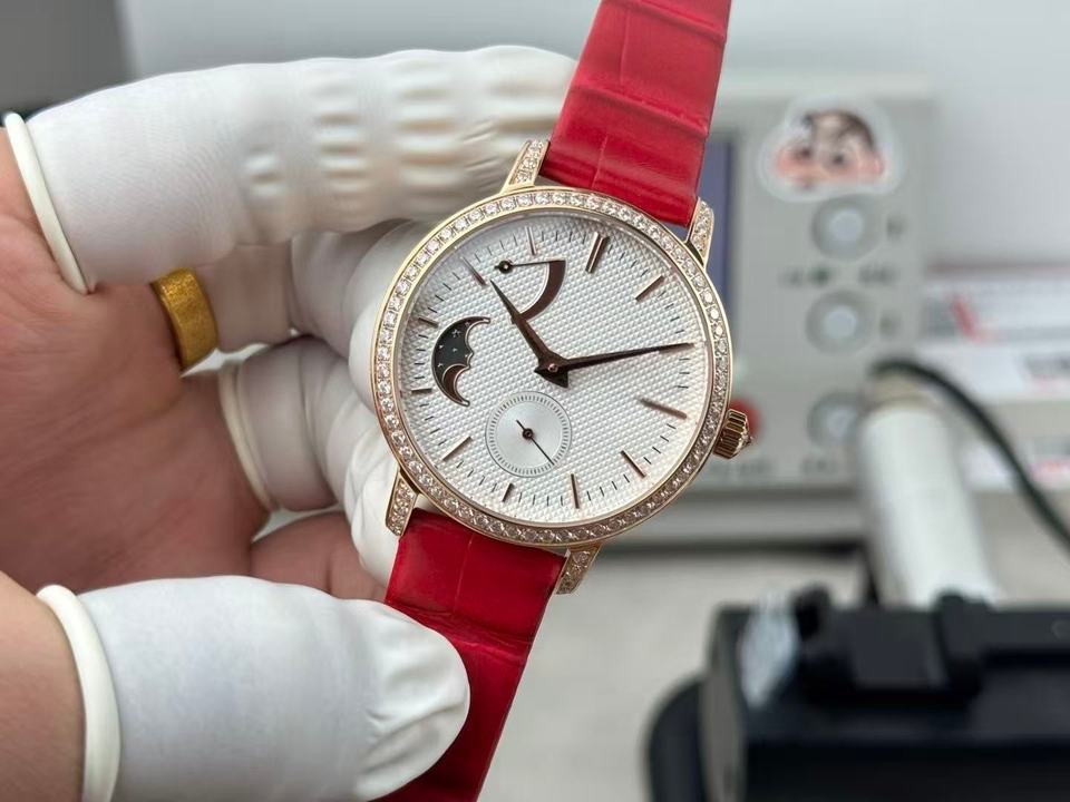 Reloj Mecánico con Indicador de Fase Lunar y Correa Roja