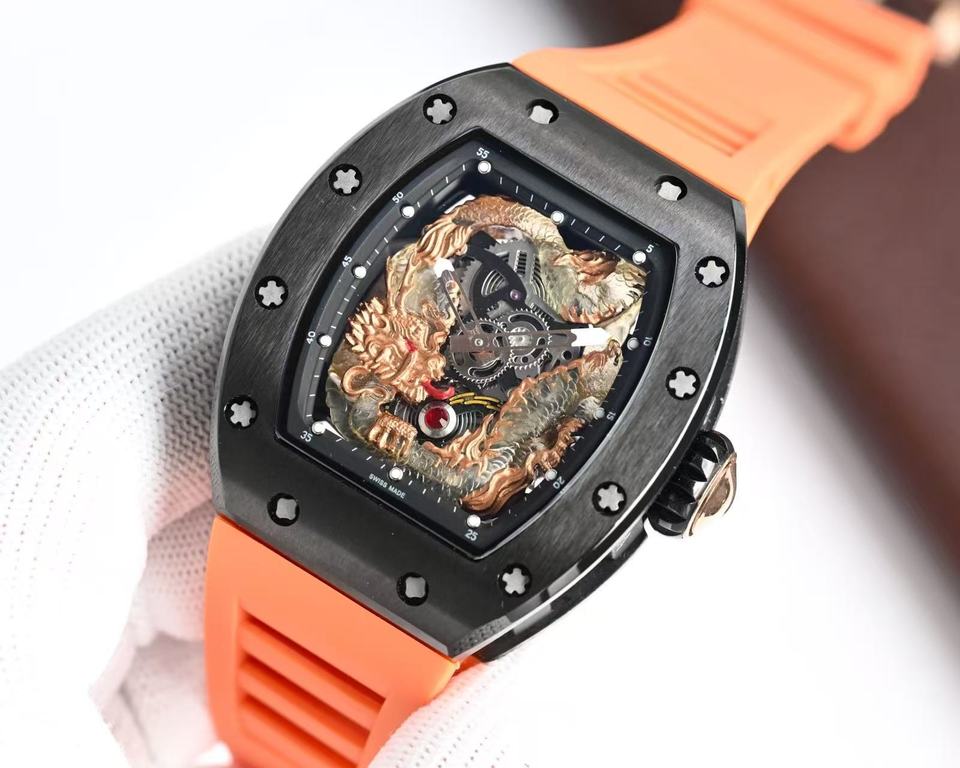 Reloj Mecánico con Movimiento Automático a Prueba de Agua, Diseño de Dragón Tallado en Color Naranja