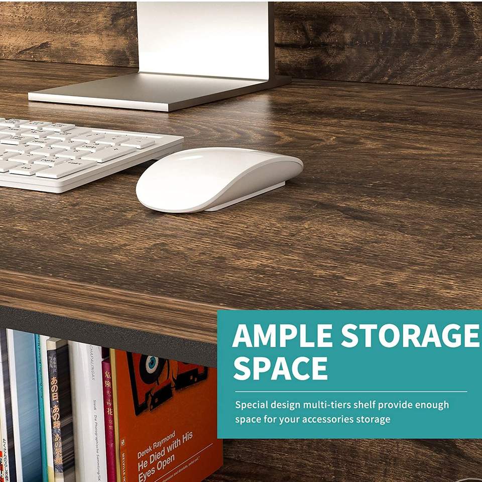 Escritorio de Oficina Moderno Mecor de 47 Pulgadas con Estantes, Escritorio Resistente con Librero para Oficina en Casa