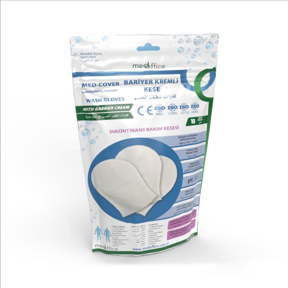 Med-Cover-Guantes duraderos sin enjuague para adultos, guantes de baño para cama con microondas con vitamina E y productos para el cuidado de la piel de Aloe Vera