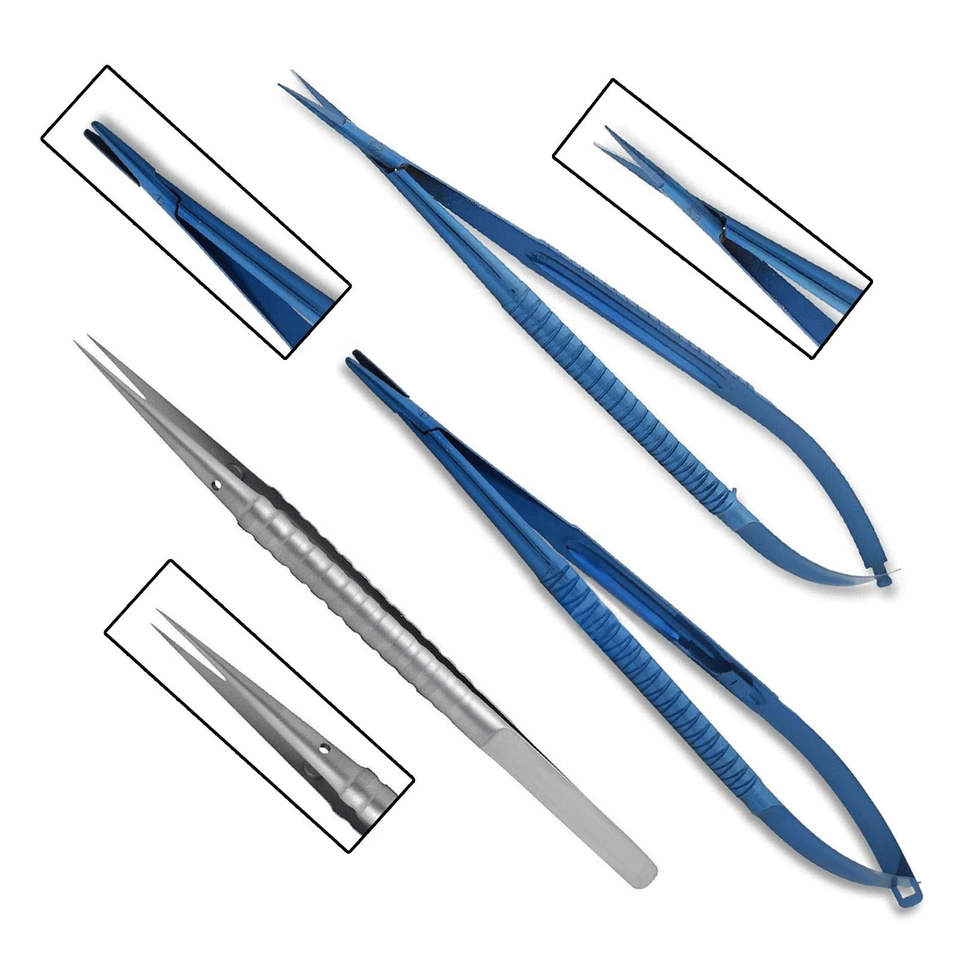 Instrumental Médico Castroviejo, Micro Tijeras Oftalmológicas, Juego de Pinzas Quirúrgicas de Acero Inoxidable, Instrumentos Reutilizables QUIRÚRGICOS